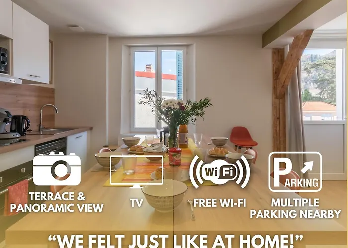 Le Belvedere - 9 Min Sanctuaires - 3 Chambres - 2 Salles De Bain - Terrasse & Vue Panoramique apartment offers self-catering amenities, such as an equipped kitchen, and an outdoor dining area for guests' convenience. Le Belvedere - 9 Min Sanctuaires - 3 Chambres - 2 Salles De Bain - Terrasse & Vue Panoramique apartment is also in the vicinity of Lourdes train station.